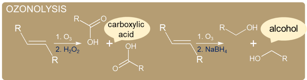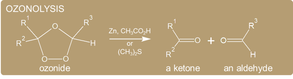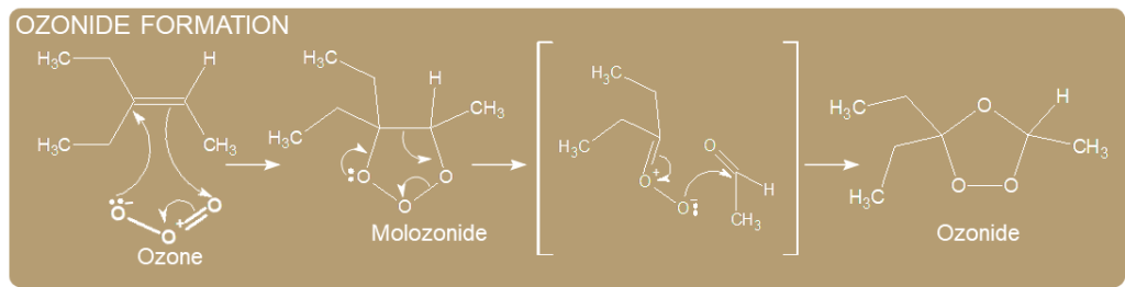 - Ozonide also reacts with oxidants such as H2O2 to form carboxylic acids.